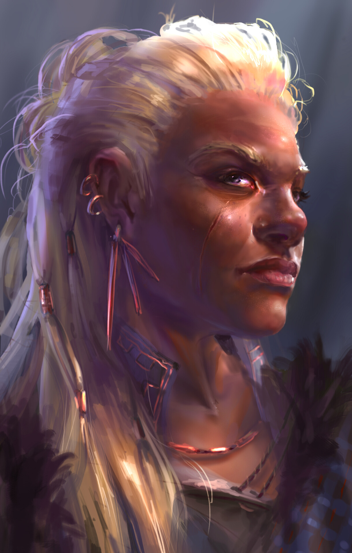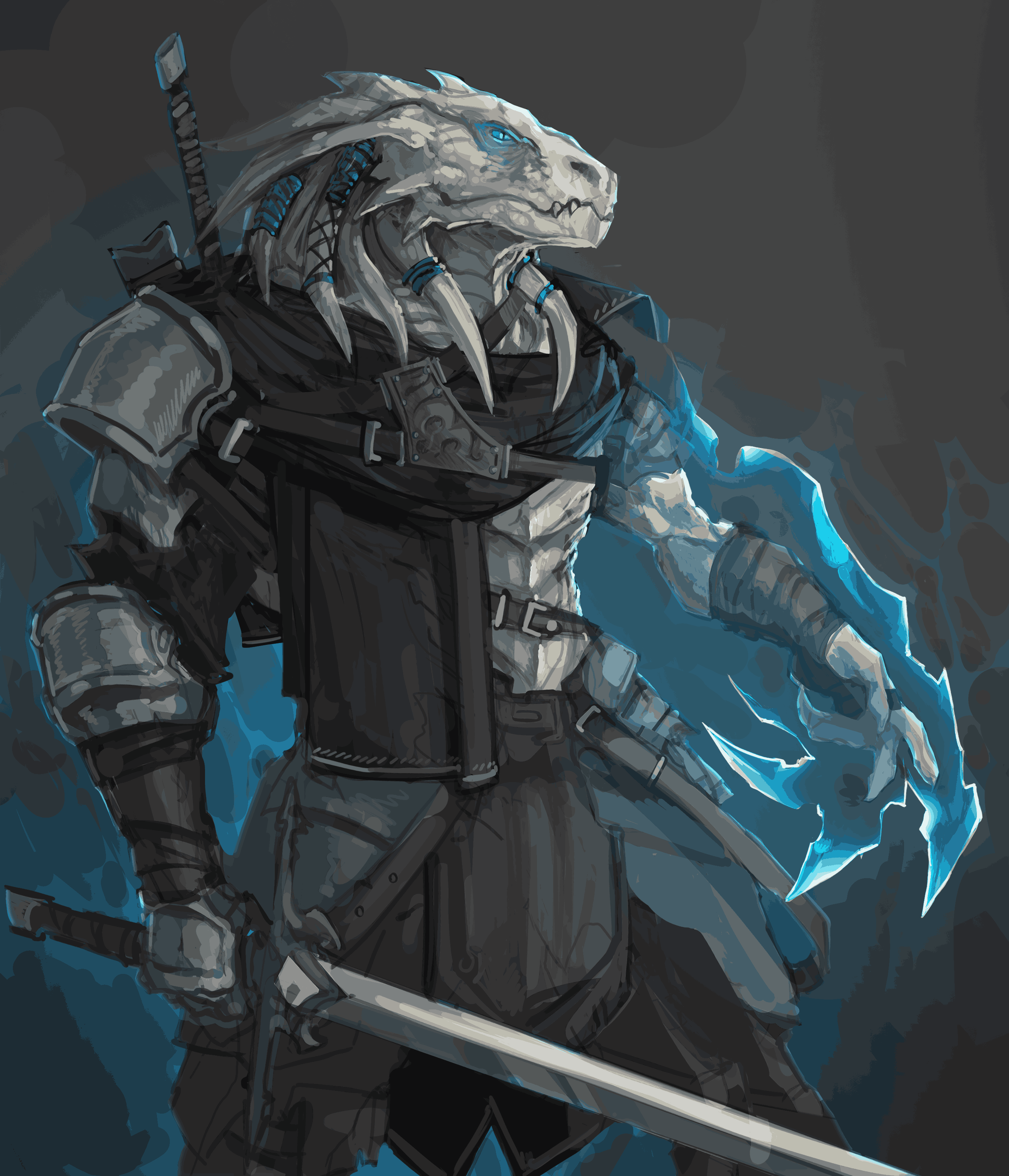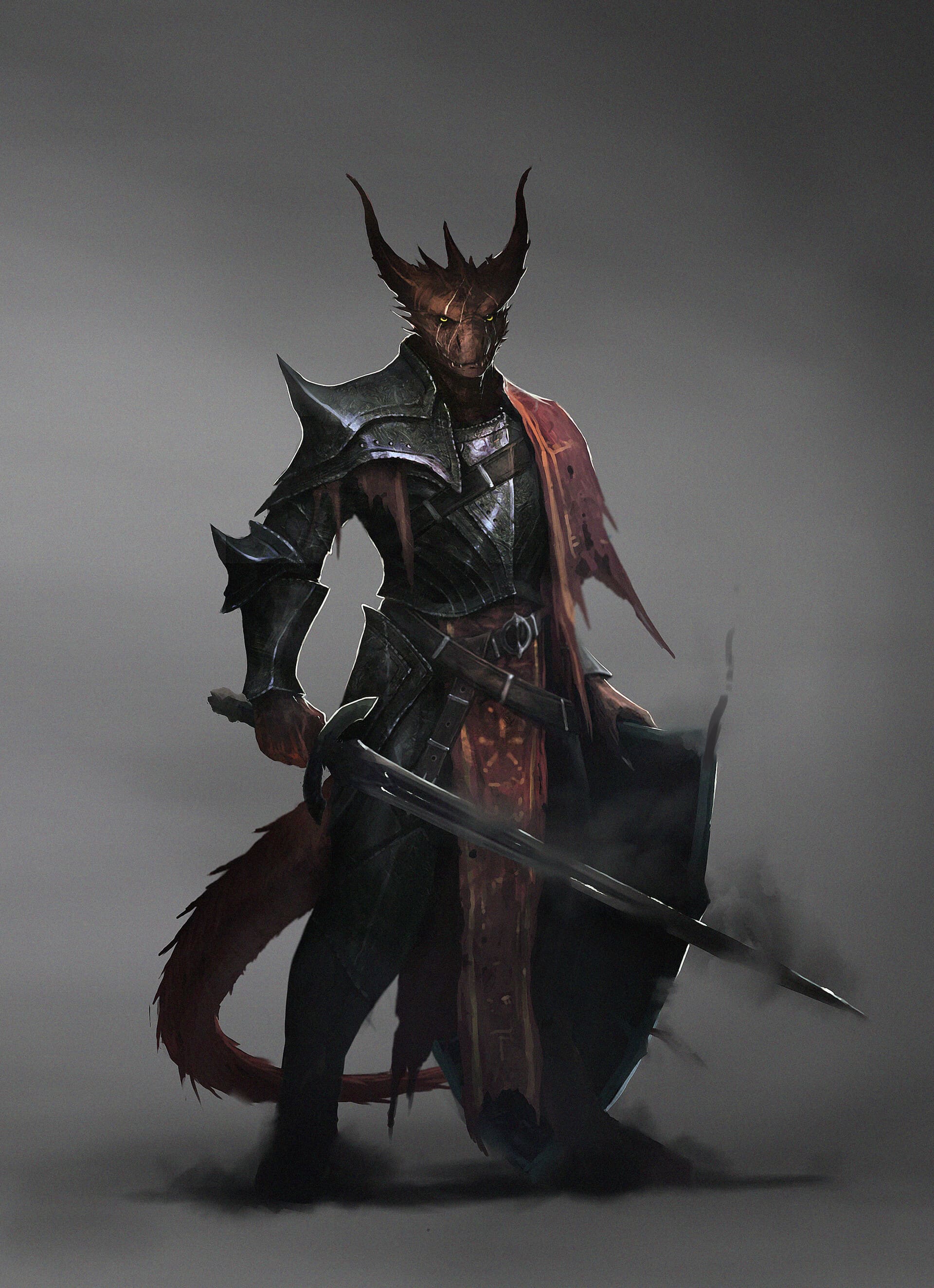 Чешуя: Напоминает кожу дракона или ящерицы. Не покрывает все тело сплошным панцирем, а распределена узорами. Покрывает спину, внешние стороны конечностей, плечи, образуя "наплечники" и "поножи" из естественной брони. На животе, внутренней стороне рук и на лице чешуя мельче, мягче или переходит в плотную, кожистую кожу.