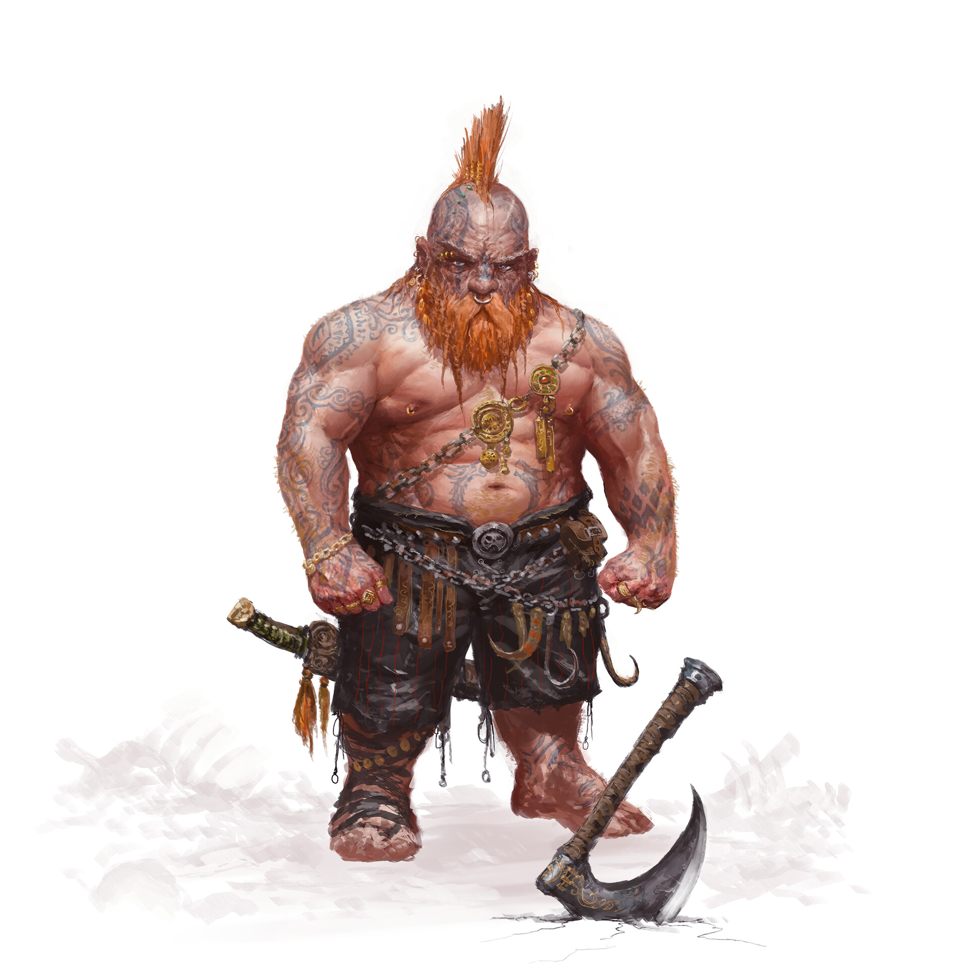 Обязательные атрибуты: огромный рост, брюхо и украшения. Это необходимо отрисовывать на скине, или модели персонажа.